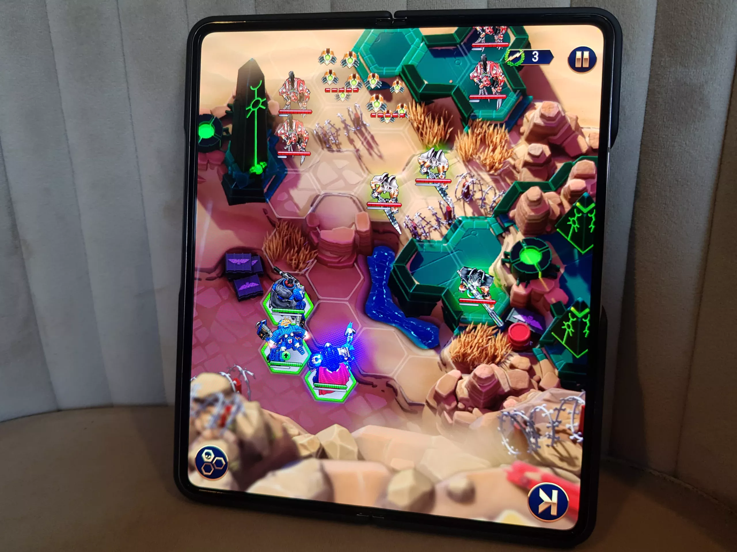 Games Workshop - Warhammer 40,000: Tacticus ile ilgili her şeye olan sevgime hitap eden bir oyun denemeye karar verdim . Note 10 Plus'ta kısaca denedim ve iyi göründüğünü düşündüm. Ancak Z Fold 4'te devasa ekran, hızlı SoC ve sürükleyici ses, bunu her gün oynanan bir oyuna dönüştürdü. Ve 1.200 nite vurabilen bir ekran sayesinde, açık havada parlak güneş ışığında sorunsuz bir şekilde keyfini çıkarmak mümkün.