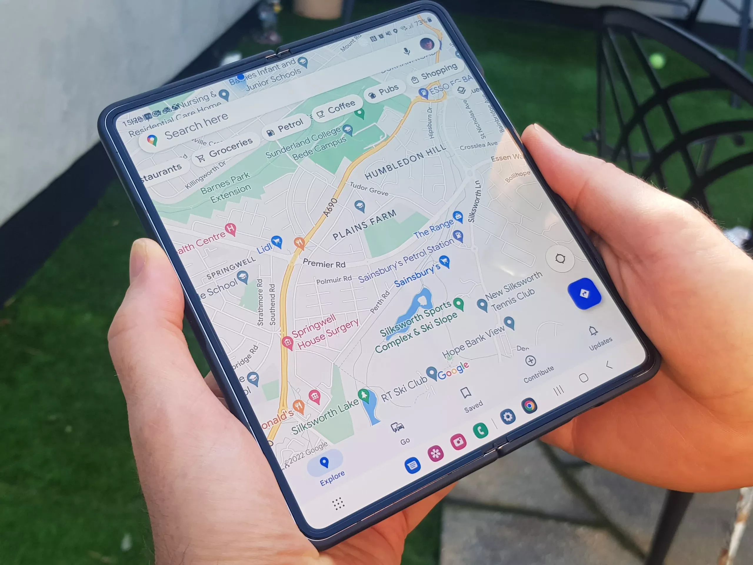 Çoğu insanın telefonlarını açık havada kullandığı iki alan olan sosyal medya ve mesajlaşma, metinleri, görüntüleri ve özellikle fotoğrafları iyileştiren tablet benzeri bir deneyimle büyük ekrandan da yararlanır. Ayrıca Samsung'un isteğe bağlı bölünmüş klavyesini kullanmaktan da keyif aldım. Ve Fold'u açmadan önce Facebook'u dış ekranda görüntüleyebilmek, böylece daha büyük ekranı otomatik olarak doldurması asla eskimez.