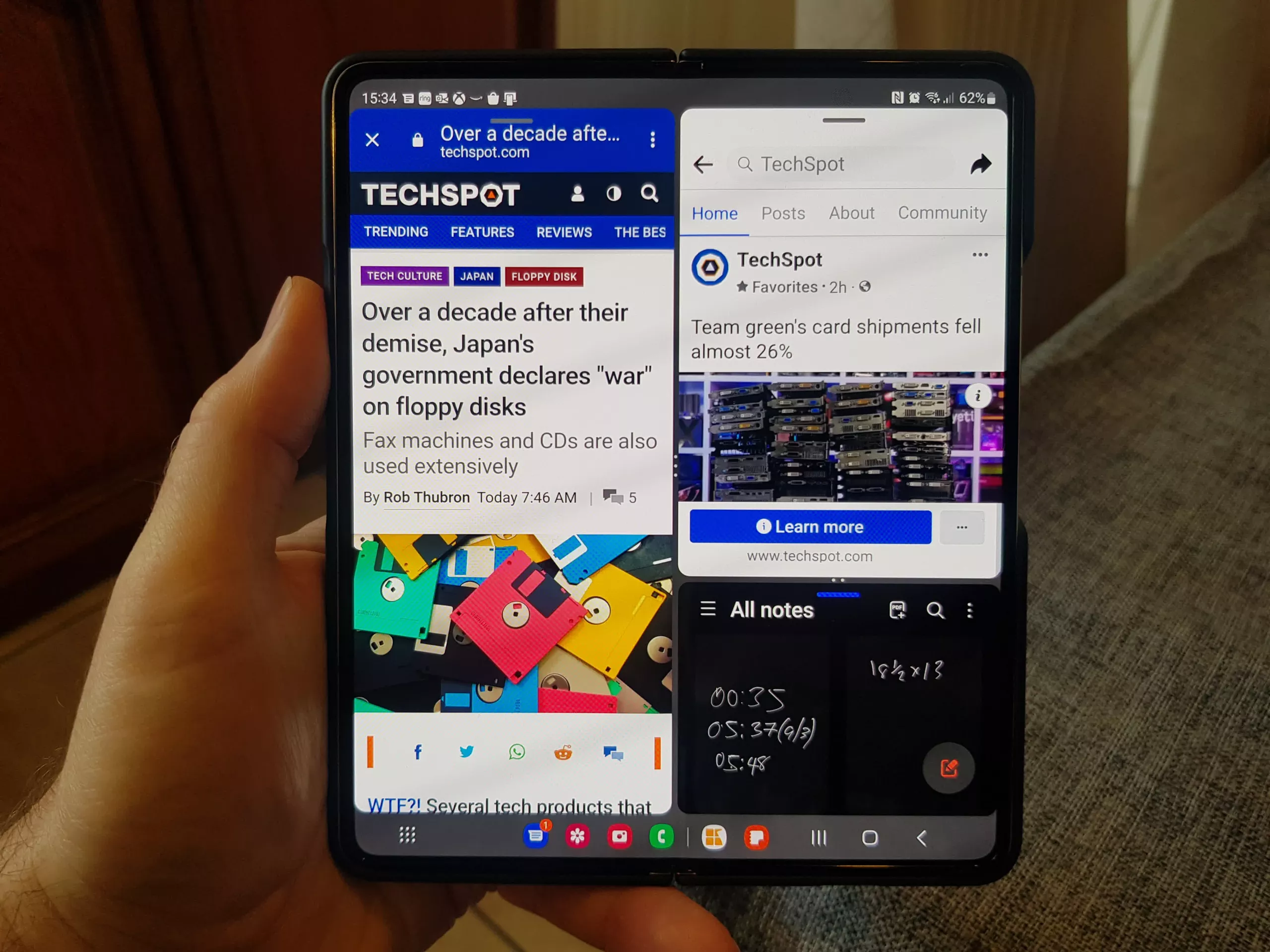 Samsung, Z Fold 4'ü en yüksek üretkenlik ahizesi olarak konumlandırıyor ve nedenini görmek kolay. Çoklu pencere modunda çok iyi çalışan çoğu uygulama sayesinde çoklu görev harika. Bir telefon ekranında Notes, Google Takvim ve Haritalar gibi bir şeyi aynı anda ve sorunsuz bir şekilde kullanmak, teoride pratikte olduğundan daha iyi çalışma eğiliminde olan bir şeydir, ancak Fold 4'ün boyutu ve görev çubuğu yetenekleri onu gerçekten kullanışlı bir özellik haline getirir.